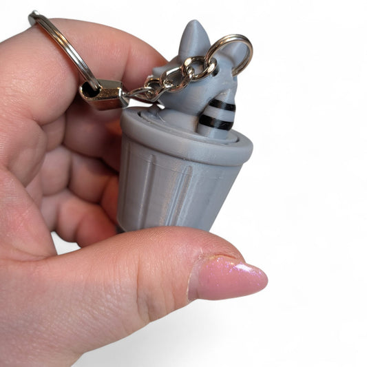 Raccoon in Trash Bin Clicker Keychain β Cute Collectable Accessory