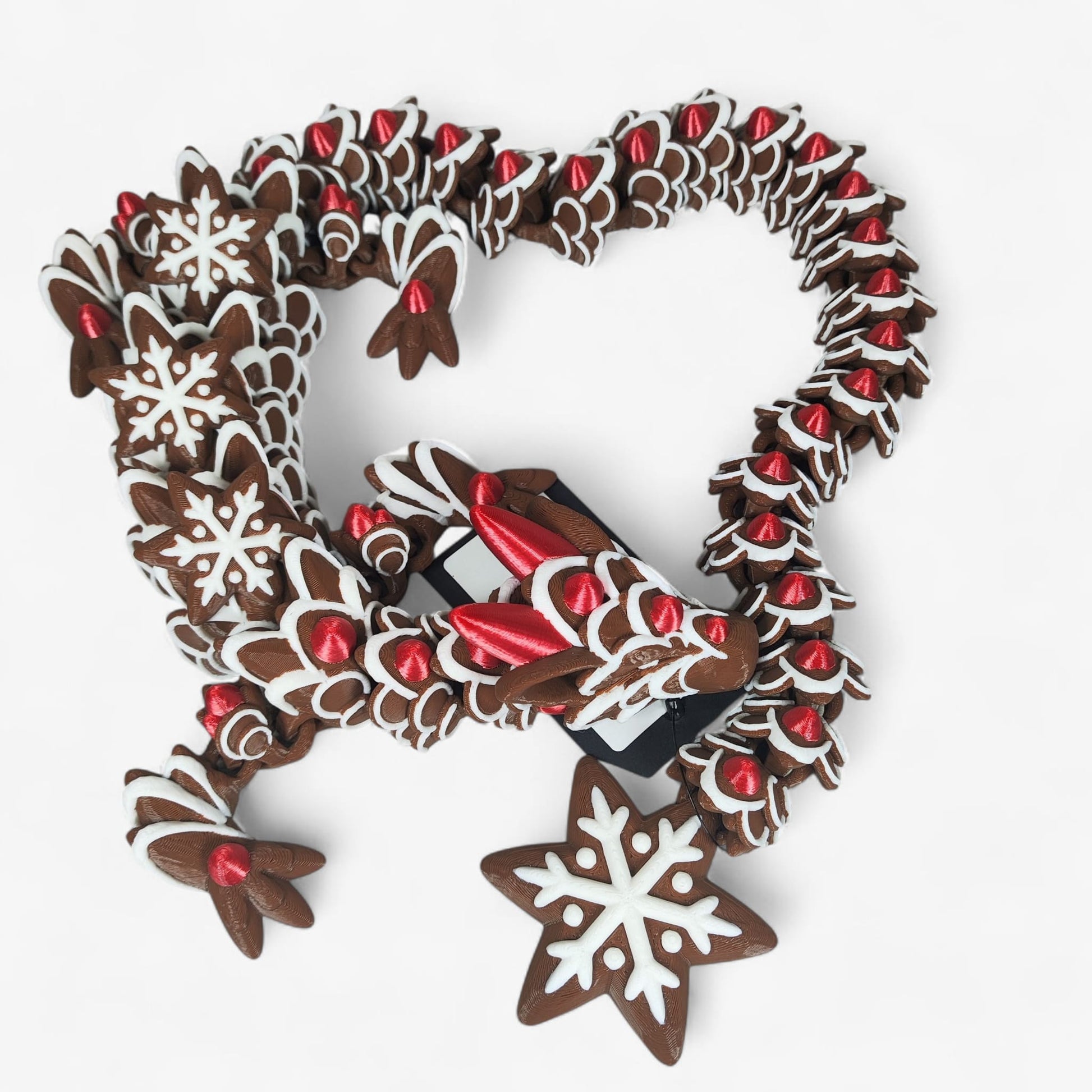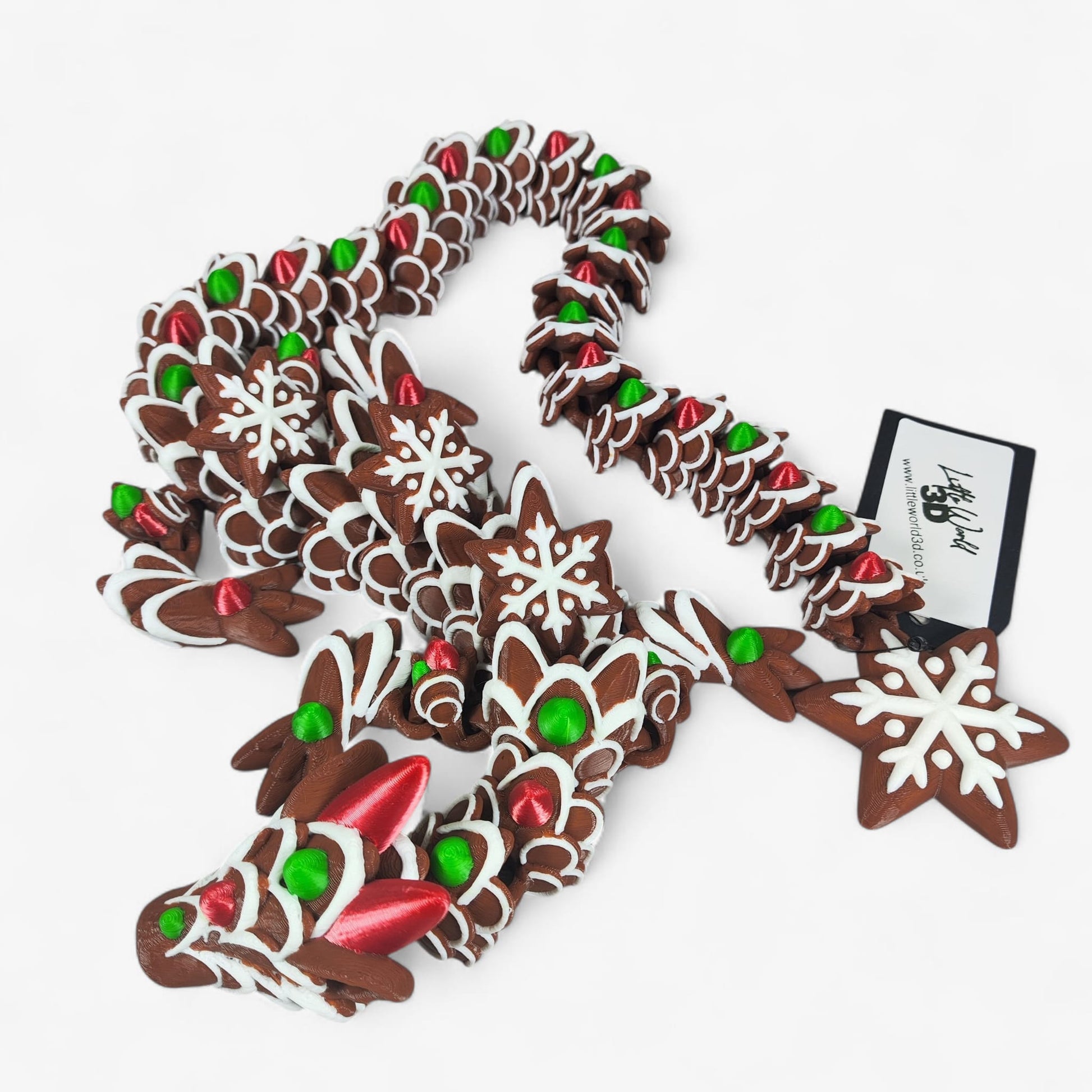 Straight from the enchanted bakery of Cinderwing 3D comes theΒ Gingerbread Dragon β a deliciously detailed, fully articulated creature that looks good enough to eat (but please donβt!). With its cookie-brown body, frosted white accents, and festive touches of red and green, this charming dragon brings Christmas cheer to your collection.