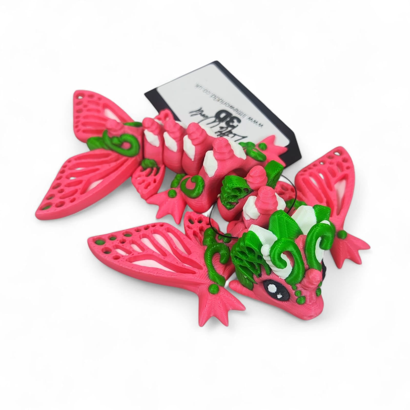 Each wyvern is fully articulated, allowing gentle movement of its wings, body, and tail. Designed by Cinderwing3D (under commercial license) and carefully 3D printed in high-quality PLA+, every Wyvern Butterfly shimmers with vibrant, nature-inspired colours.
