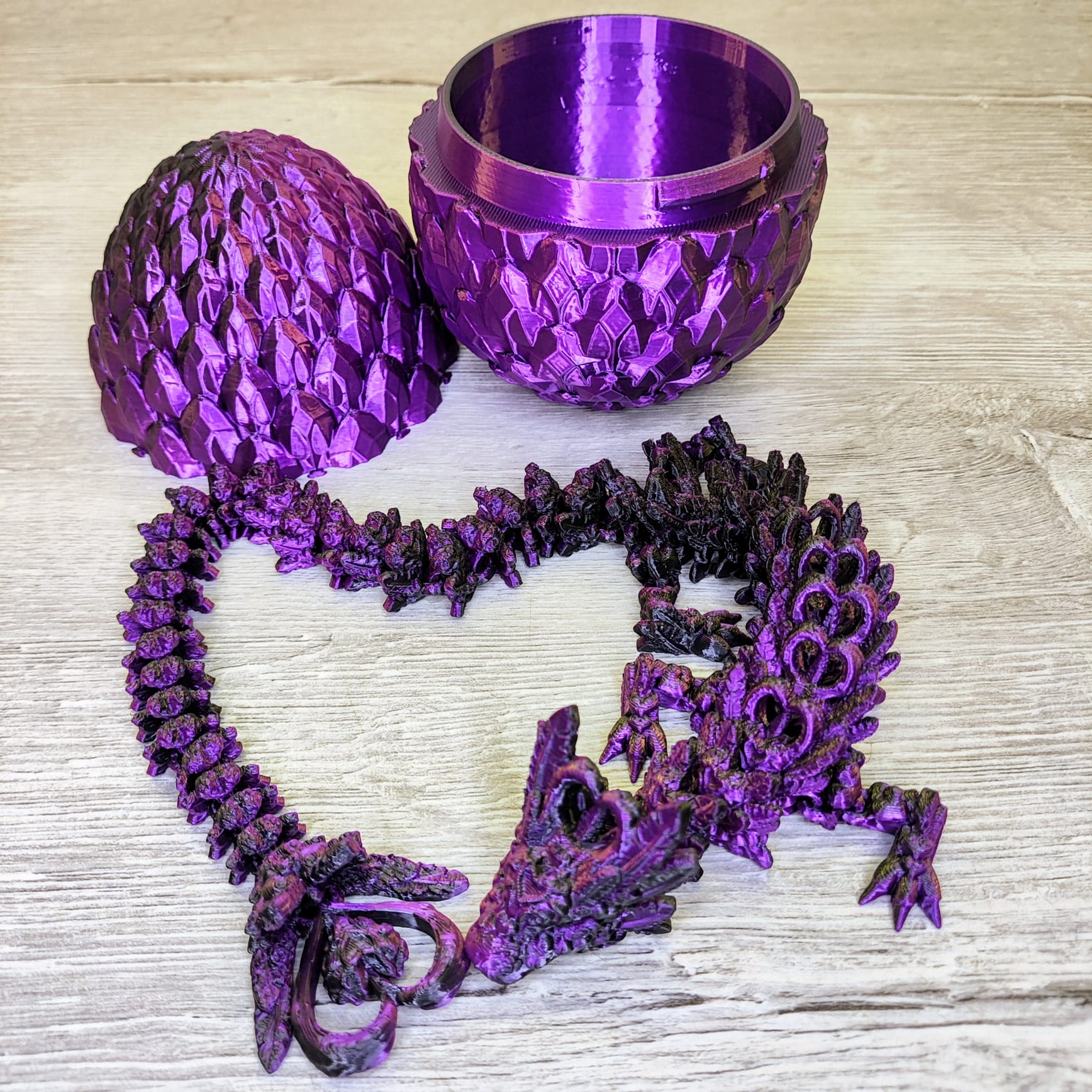 Discover the magic of our Heart Dragon in Egg, a stunning 3D-printed creation perfect for dragon lovers and collectors alike. The intricate dragon, approximately 40 cm (15.7 inches) long, comes nestled inside a beautifully crafted egg measuring 12 cm (4.7 inches).