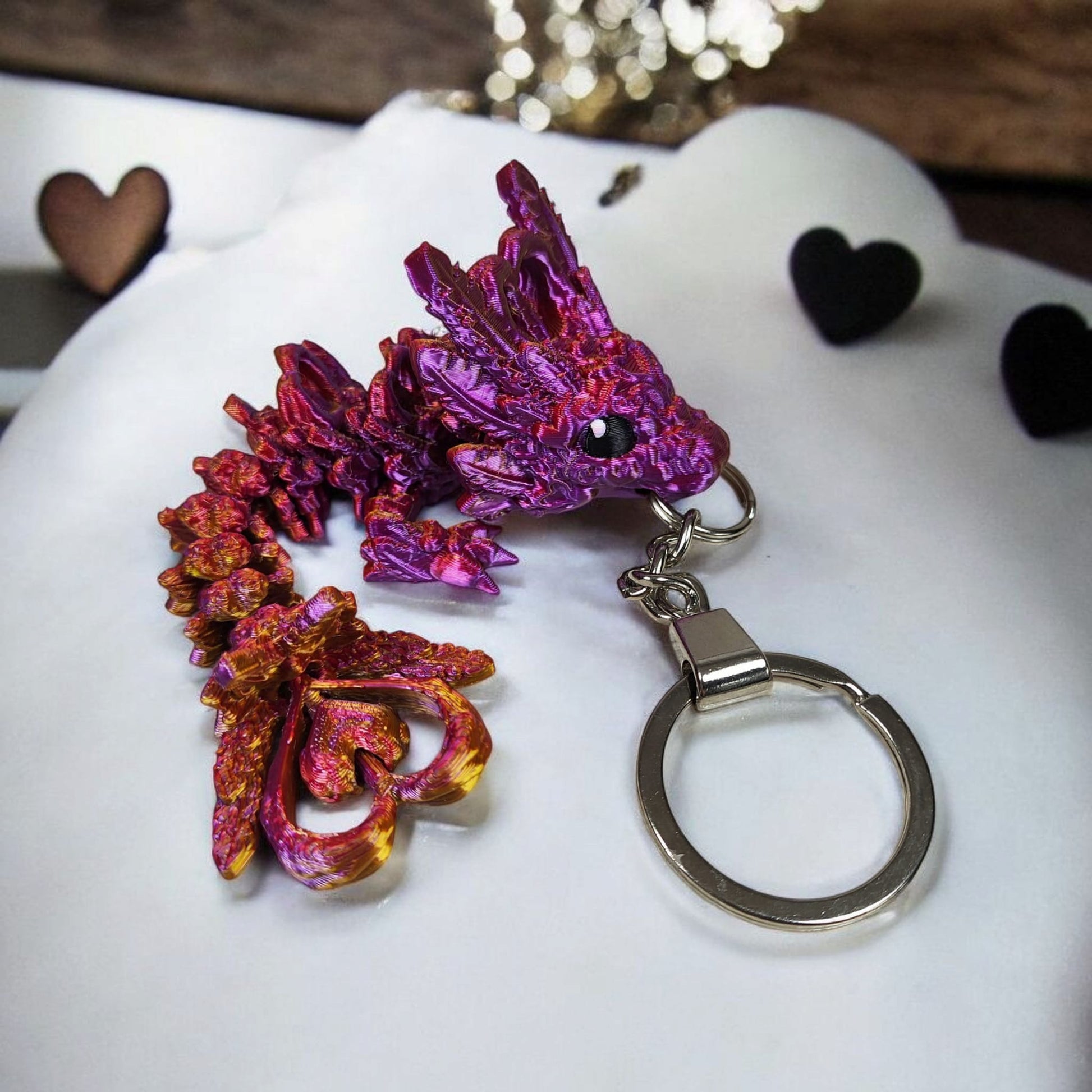 Carry a spark of magic with you wherever you go with the Tadling Heart Dragon Keychain, designed by Cinderwing3D. This enchanting mini dragon features heart-inspired details and a flexible body, making it a charming companion for bags, keys, or as a small decorative gift.